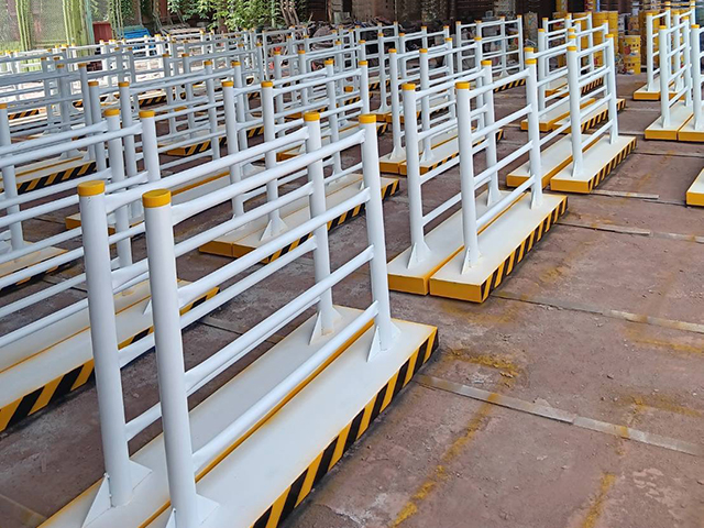 高度:114cm。寬度:30cm。長度:180cm。立柱:2 1/2"鋼管。橫杆:1 1/4"鋼管。底座:厚1.5mm鋼板。顏色:本體白色,底座四周黃色(正面黃黑斜紋)。